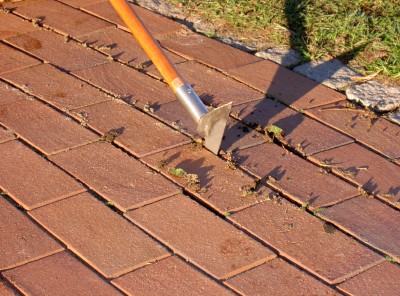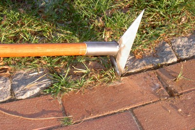 (1) Auskratzen der Pflasterfugen,